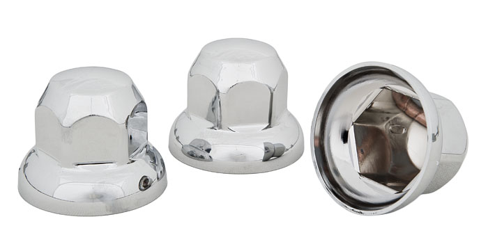 Chromen plastic wielmoerkappen in 32mm en 33mm geleverd per 20 stuks verpakt.